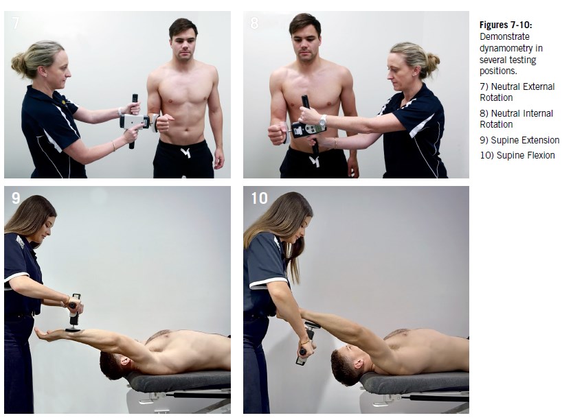 There are several tools and methods for evaluating the shoulder complex (dynamometry, force frame, and ultrasound). Assessment using hand-held dynamometry (HHD), a valid and reliable method10 is, in our view, the most convenient method of assessment on the pool deck. It offers the greatest utility in the rehabilitation pathway for tracking tolerance to load and guiding decision-making. In other words, HHD informs how sensitive the shoulder is to a force-producing task.
