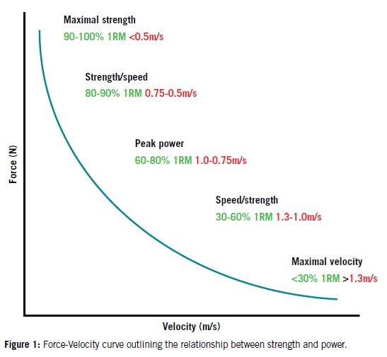Strength and power streams are guided by the inverse force-velocity relationship. Though each requires focused interventions, strength offers the foundation upon which power training is built. Implementing the force-velocity concept in strength and power streams helps to precisely prescribe loads, monitor progression, safely transition between phases, and improve rehabilitation results.