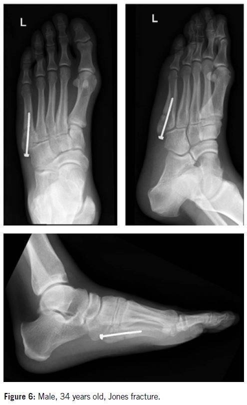 Pietropaoli et al.7 showed that the forces necessary to cause displacement of stabilized Jones fractures in their study are above the forces that should be transmitted within the lateral mid-foot during normal weight bearing. This suggests that the intramedullary fixation technique made no biomechanical difference in their study and is instead a matter of the surgeon's preference, as is the choice of screw (4.5 malleolar or 4.5 cannulated).
