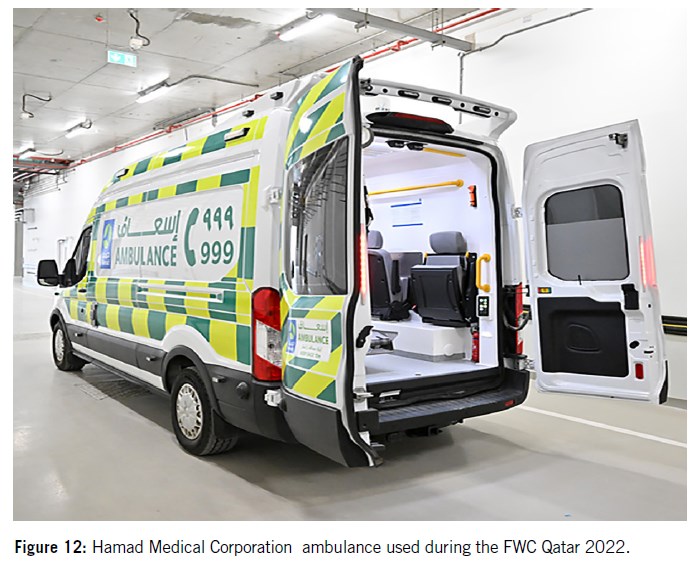 The second essential element in the system of emergency care during the FWC2022 was the regular emergency department infrastructure associated with, each of the five Hamad Medical Corporation General Hospitals:
