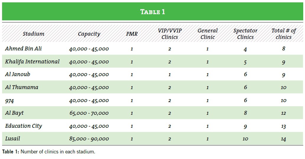 Having the FWC2022 in one small country provided a unique opportunity to standardise medical services at official venues across the tournament and to centralise the command, control and reporting system of these services.