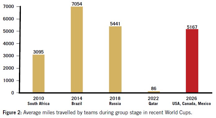 Multi-country hosting across the United States, Mexico and Canada substantially expands the geographical footprint of the tournament. Matches will be distributed across a wide range of host cities separated by significant travel distances (Figure 2), introducing logistical demands that exceed those of recent World Cups. While efforts will be made to cluster teams geographically during the group stage, progression through the tournament is likely to necessitate long-distance travel between venues with limited recovery windows.